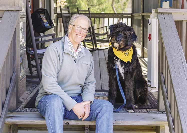 me, adopted me and gave me a fur-ever home in Cashiers. Woofs to happiness! From day one, I get to go to work with Thomas, who’s the membership and community relations director for the Cashiers Area Chamber of Commerce. It’s such an exciting place to work and I have become the official Chamber/ Visitor Center greeter and mascot ( hence my name, Chambers ). The best part of my day is saying “hello” to all the visitors that come by which means more pets for me. We share with our guests all the wonderful things to do in the Cashiers and surrounding area from hikes to waterfalls, and all the yummy restaurants and shopping.