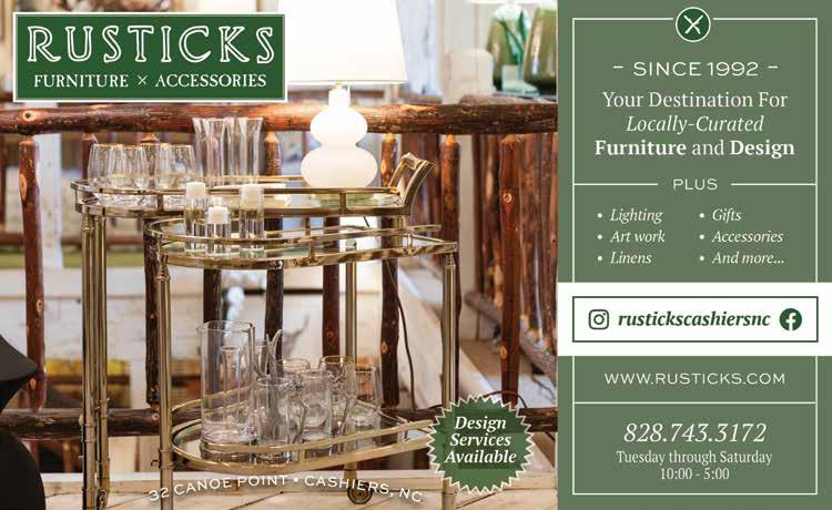 Riverstone Pools & Spas riverstonedevelopmentgroup.com P 195 Robin’s Nest robinsnest-cashiers.com P 199, 207 Rock the Plateau rocktheplateau.org P 100 Roman’s Roofing romansroofingnc.com