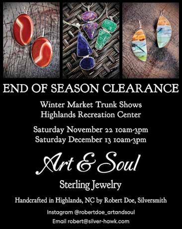 Friday night, an After Dark party offers cocktails and bidding in a room aglow with illuminated trees. Food is generously prepared by The Club at High Hampton. On Saturday morning, families flock to a VIP Breakfast with Santa and Friends, a chance for children to enjoy a holiday meal and share their wish lists with Santa himself. This year’s breakfast is sponsored by Waffle House.