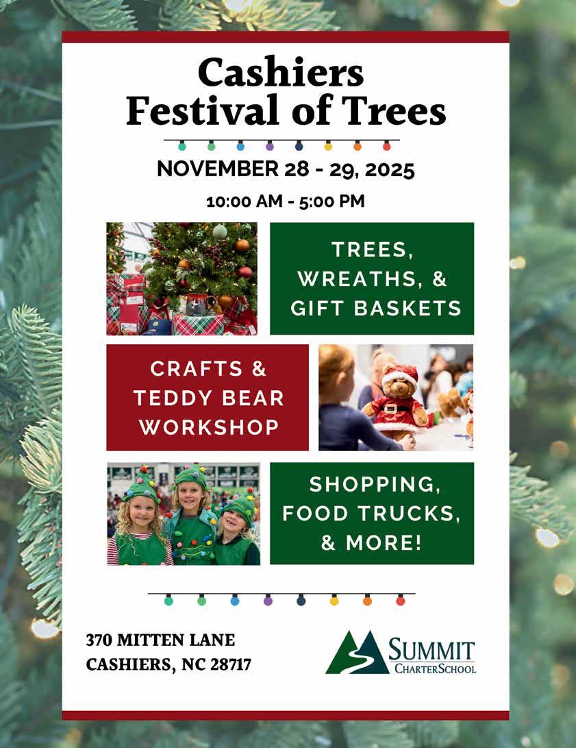 Each Thanksgiving weekend, the Cashiers Festival of Trees lights up the Summit Center with festive décor, community spirit, and support for Summit Charter School.