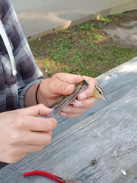 7.StafffinishfittingaBlack-throatedBlue WarblerwithaUSGSaluminumband.