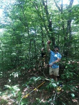 Cyrena Bedoian, a student at Berry College, volunteered 50 hours to assist with bird banding at HBS. Jordan Mershimer, an undergraduate at Western Carolina University, was the recipient of a Golden LEAF Scholars Leadership award that paid for his internship at HBS. Jordan worked over 240 hours at HBS, helping with bird banding, measuring trees and shrubs in a large permanent vegetation plot established to assess long-term changes in forest vegetation over time, and sorting stream macroinvertebrates samples from nearby Coweeta Hydrologic Laboratory as part of a study to compare current monthly macroinvertebrate richness and abundance from research conducted in the same streams in 1953. Jordan also assisted with PhD student Bernice Hwang’s (Lund University, Sweden) research into the role insect leaf herbivory plays in the nutrient dynamics of old growth forests globally. Part of this research involved using a giant slingshot to hurl a thin, strong rope 80 to 90 feet into the forest canopy and pull down fresh green leaves for nutrient analysis. Jordan, who competes in weightlifting competitions, was particularly invaluable in ensuring the rope reached maximum velocity and height in the tall canopies of old growth at Joyce Kilmer Memorial Forest and remnants of the primeval forest on the Highlands Plateau.