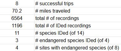 More specifically, on just the second trip of the summer, our section from Deep Gap to Dick's Creek was the most active night-- 770 recordings were able to be identified! In addition, 9 of 13 species found in western North Carolina were present in just one night!