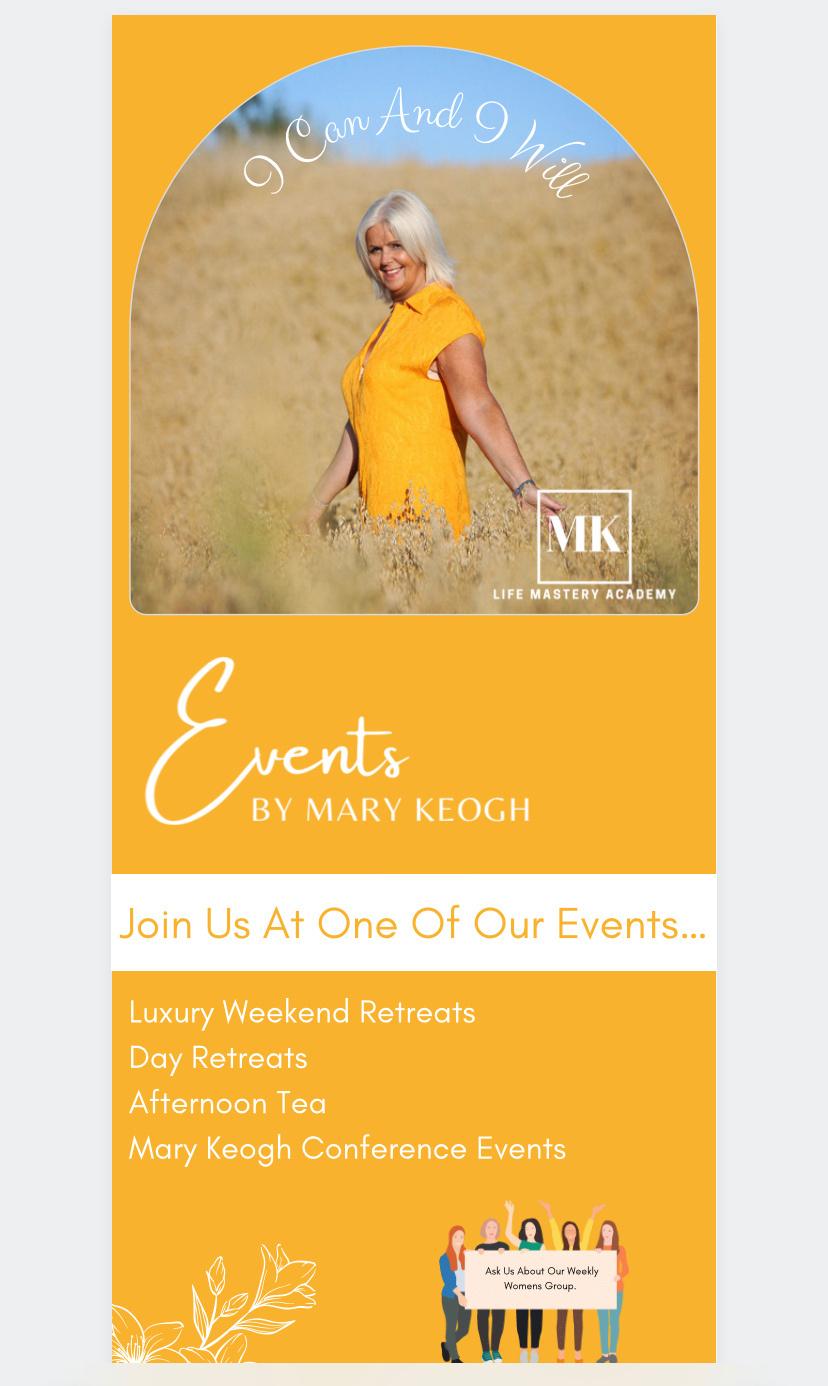 "When I speak at an event, I want to reach everyone in the room I resonate with women, men and young people and the bounds of personal development, growth, self image, confidence and beyond are all things that we can relate to and I want to get to the root of why the people are here. What are the issues and challenges we face, and how can we improve and equip ourselves with the tools to overcome these obstacles and become the very best version of ourselves." Mary Keogh