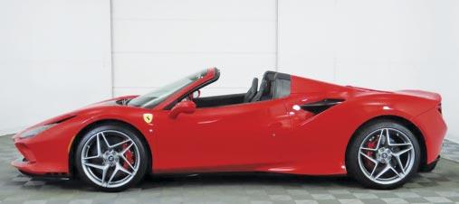 2021 Ferrari F8 Spider- Bianco avus over rosso Ferrari leather, 3.9 liter twin-turbo V8, 7-speed auto trans, 6,653 miles, 20” forged black wheels, carbon air splitter, carbon central bridge, carbon driving zone + LEDs, yellow rev counter and brake calipers, cavallino stitched to headrest, titanium exhaust, Scuderia shields, Apple CarPlay. $384,900 Stock #PM0261325A Tactical Fleet 972-666-9386