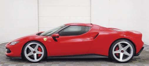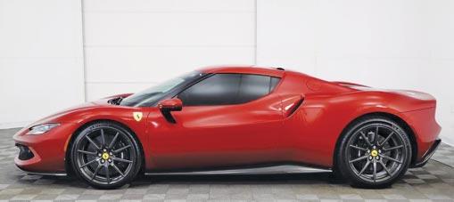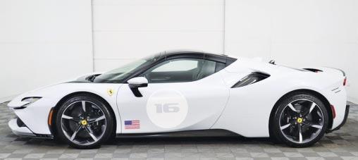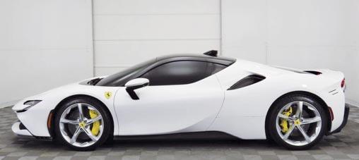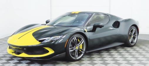 2023 Ferrari SF90 Stradale- Nero Daytona over bianco leather, 4.0 liter twinturbo V8, 8-speed auto trans, 838 miles, gloss black 20” wheels, carbon fiber driving zone + LEDs, carbon fiber dash inserts, Daytona style carbon fiber seats, carbon fiber sill kicks, Italian flag motif on dash, HiFi audio. $558,900 Stock #B25708 Marshall Goldman (424) 430-1400
