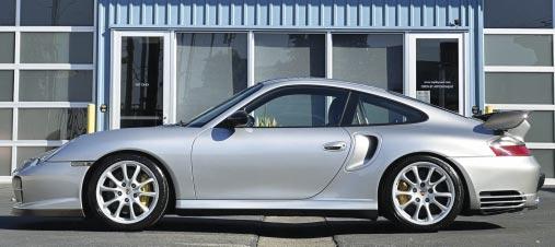2004 Porsche 911 GT2- Arctic silver metallic over black leather, 477 hp 3,6 liter twin-turbocharged H6, 6-speed manual trans, 21,004 miles, 1 of 29 US examples, original condition, Porsche COA included, clubsport roll bar, carbon brakes, yellow calipers. $249,800 Copley West (949) 836-8844