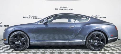 2012 Bentley Continental GT- 567 hp twin-turbo 6.0 liter W12, 6-speed auto trans, AWD, 22,972 miles, Mulliner package, upper & lower chrome matrix front grilles, emblem embroidered to front & rear headrests in white, leather headliner, piano black interior veneers, power heated & cooled seats, 3-spoke sport multi-function steering wheel. $59,000 Stock #23391 Certified Benz & Beemer (844) 568-1362