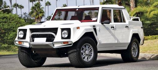 1990 Lamborghini LM002- White over red leather, 444 hp 5.2 liter V12, 5-speed manual trans, 1,271 miles, 4x4, quilted interior leather trim, wood interior dash, Alpine premium audio, automotive brochures and literature included, excellent condition, Pirelli Scorpion tires. Call For Price Pagani Beverly Hills (310) 484-5837