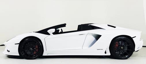 2013 Lamborghini Aventador LP 700-4 Roadster- Bianco isis over bianco polar leather, 700 hp 6.5 liter V12, 7-speed auto trans, 6,209 miles, AWD, forged Dione style gloss black wheels, carbon ceramic brakes, red calipers, transparent engine bonnet, T engine trim in carbon fiber, elegante interior pkg. $348,900 Stock #B25561 Marshall Goldman (424) 430-1400