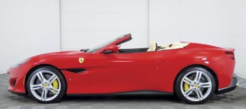 2022 Ferrari Roma- Bianco avus over rosso leather, 612 hp twin-turbo 3.9 liter V8, 8-speed F1 auto trans, 2,926 miles, red calipers, Scuderia shields, front grille in light satin chrome, full electric seats, cavallino stitched to headrests, bianco interior contrast interior stitching. $219,900 Stock #B25032 Marshall Goldman (424) 430-1400