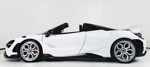 2022 McLaren 765LT Spider- Silica white over carbon black/ dove gray leather & alcantara, 755 hp twin-turbo 4.0 liter V8, 7-speed auto trans, 3,619 miles, extensive interior & exterior carbon fiber options, stealth pack, electrochromic roof, superlightweight racing seats, 360 degree parking assist, vehicle lift, 10-spoke super lightweight wheels. $572,765 Stock #9073UC O’Gara Coach Beverly Hills (877) 588-8862