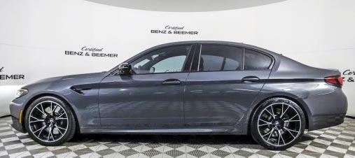 2021 BMW M5 Competition- Gray metallic over black leather, 600 hp twinturbo 4.4 liter V8, 8-speed auto trans, 32,618 miles, competition package, Bowers & Wilkins premium surround sound, executive package, driving assistance plus package, heated & ventilated seats, adaptive cruise control, ambient interior lighting. $82,000 Stock #23702 Certified Benz & Beemer (844) 568-1362