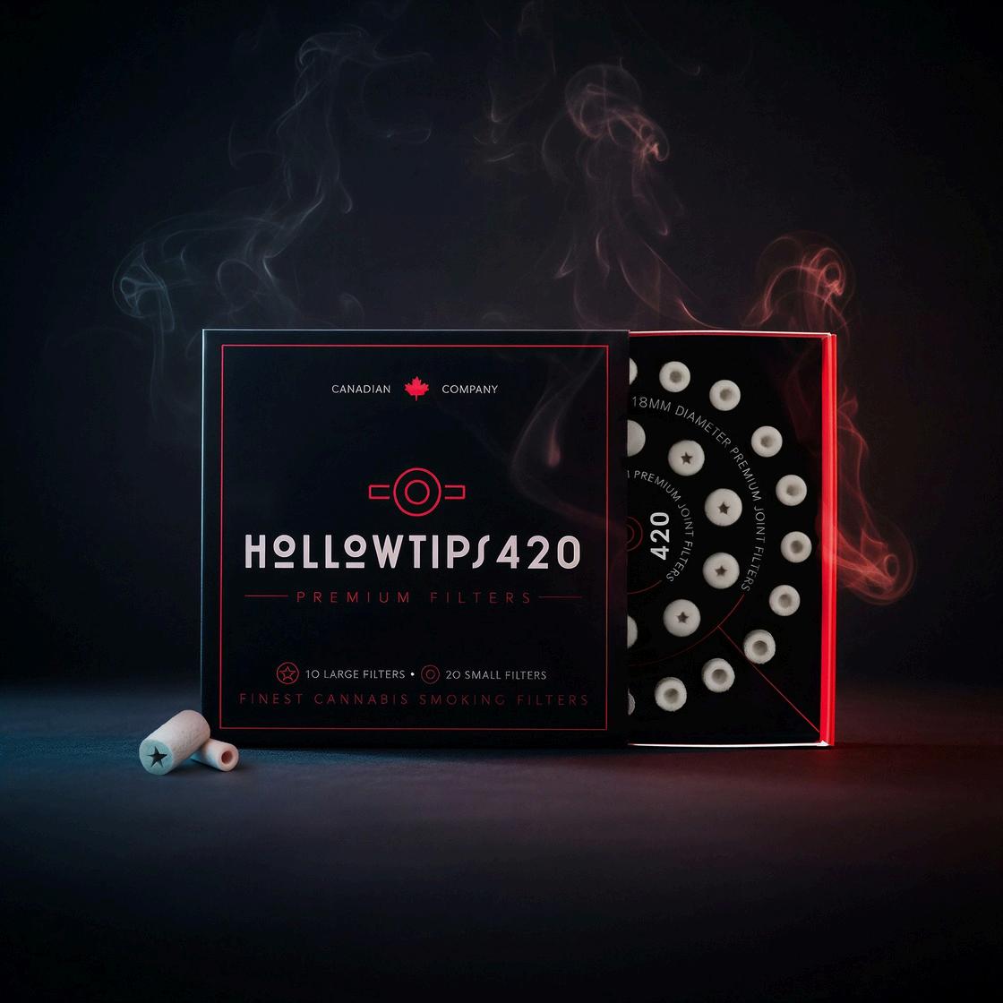 Cannabis produces 4x more tar. Paper tips don’t filter and cellulose filters over do it. Hollowtips420 bridges the gap. The first ever cellulose filters crafted with precision-cut holes that reduce tar without muting the flavor or flow.