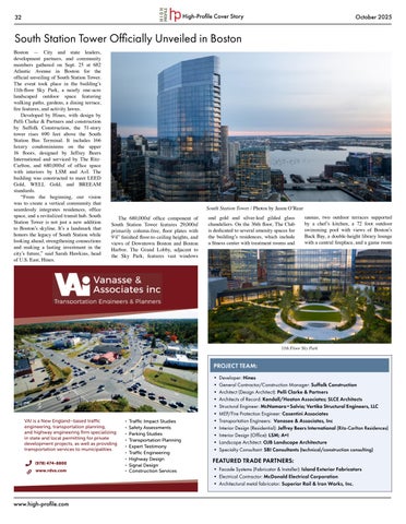 the official unveiling of this over 5-year project on Sept. 25. What an amazing evening! The event took place on the tower’s 11th floor Sky Park, a nearly oneacre landscaped outdoor space featuring walking paths, gardens, a dining terrace, fire features, and activity lawns. Congrats to Hines and the entire design and construction team for bringing this project to life. The tower is a wonderful addition to Boston’s skyline and is also this month’s cover story! Read the full story on page 32.