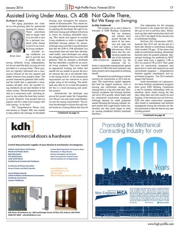 housing units throughout the commonwealth of Massachusetts. This statute encourages affordable housing development by granting the developer the right to exceed local zoning and wetland restrictions in return for building affordable housing. This statute also applies to assisted living residences in order to expand the affordable housing options for seniors. Although many assisted living developers find that the 20% to 25% affordable unit requirement does not meet their development model, some developers are seeing the untapped potential that lies in the 40B pathway. Take for example a developer that has identified a market for an assisted living residence. They have located an appropriate building site within that market but are unable to pursue the project because the use is not allowed within the zoning district, or the dimensional requirements are too restrictive to allow proper siting of the building. The developer may then try to re-zone the property, but this is a time-consuming and uncertain process. Alternatively, the developer may pursue the project under the Comprehensive Permit Law and inject some flexibility into the zoning requirements. This allows the developer to choose the right site, not based on a Zoning Bylaw that may be Continued on page 21