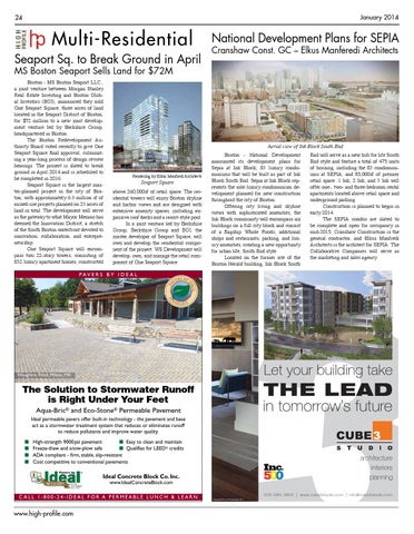 End will serve as a new hub for life South End style and feature a total of 475 units of housing, including the 83 condominiums at SEPIA, and 85,000sf of premier retail space. 1 Ink, 2 Ink, and 3 Ink will offer one-, two- and three-bedroom rental apartments located above retail space and underground parking Construction is planned to begin in early 2014. The SEPIA condos are slated to be complete and open for occupancy in mid-2015. Cranshaw Construction is the general contractor, and Elkus Manfredi Architects is the architect for SEPIA. The Collaborative Companies will serve as the marketing and sales agency.