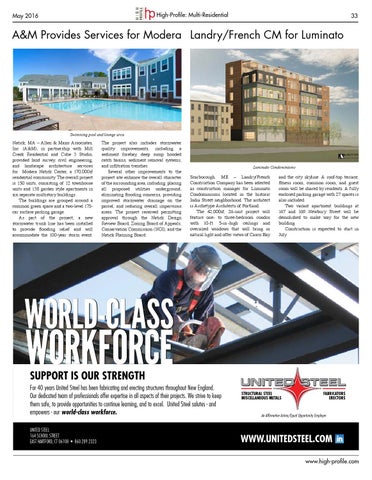 For 40 years United Steel has been fabricating and erecting structures throughout New England. Our dedicated team of professionals offer expertise in all aspects of their projects. We strive to keep them safe, to provide opportunities to continue learning, and to excel. United Steel salutes - and empowers - our world-class workforce. UNITED STEEL 164 SCHOOL STREET EAST HARTFORD, CT 06108 • 860.289.2323