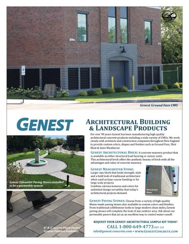 Architectural Building & Landscape Products For over 90 years Genest has been manufacturing high quality architectural concrete products including a wide variety of CMUs. We work closely with architects and construction companies throughout New England to provide custom colors, shapes and finishes such as Ground Face, Shot Blast & Satin Weathered.