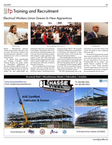 executive manager, NECA. “We are proud to celebrate and guide the next generation of electricians and technicians as they power their futures in the ever-growing electrical construction industry.” “Union membership and careers in the trades are one of the best ways to close pay gaps, create pathways to the middle class and level the playing field for all,” said Lou Antonellis, business manager, IBEW Local 103. “We’re very proud to welcome these talented electricians who will be building our communities’ futures.” The 2022 apprenticeship class is the
