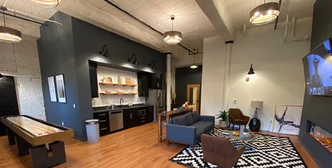 The new residential community includes a variety of amenities including a club room, on-site bicycle storage areas, a fitness center, work-from-home stations for any hybrid or remote work scenario, and resident storage areas.