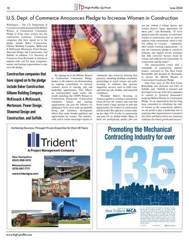 The U.S. Department of Commerce recently announced the Million Women in Construction Community Pledge to bring more women into the construction workforce. By signing on to the pledge, leaders in the industry are demonstrating an ongoing commitment to increase women’s access to training, jobs and leadership opportunities. Read more about it on page 12.