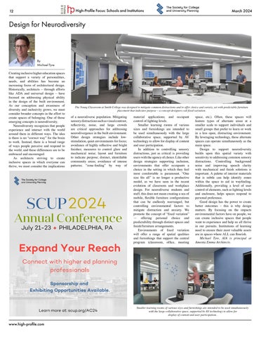 I’m looking forward to attending the Society for College and University Planning’s (SCUP) 2024 North Atlantic Regional Conference on March 24-26 in Boston. For this issue, I caught up with Michael A. Nieminen, FAIA, principal at Kliment Halsband Architects, a Perkins Eastman Studio, and the 20232026 council chair of SCUP North Atlantic Region, on what key initiatives he is prioritizing to enhance integrated planning within the higher education landscape, and how he is ensuring that SCUP’s offerings align with the evolving needs of the higher ed community in the North Atlantic region. Nieminen says, “Topics of particular relevance include accelerated movement toward zero carbon emissions, master planning, student life, workplace, faculty engagement, and