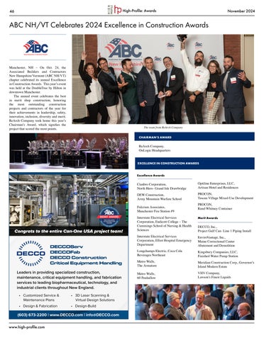 The Associated Builders and Contractors New Hampshire/Vermont chapter (ABC NH/VT) celebrated its annual Excellence in Construction