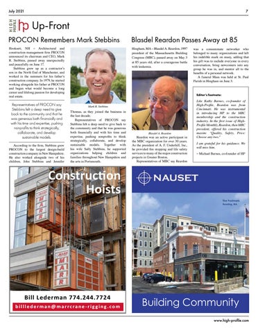 Like Kathy Barnes, co-founder of High-Profile, Reardon was from Cincinnati. He was instrumental in introducing HP to the MBC membership and the construction industry. In the first issue of HighProfile Monthly, Reardon, then MBC president, offered his construction maxim: “Quality, Safety, Price: Choose any two.” I am grateful for his guidance. We will miss him. – Michael Barnes, co-founder of HP