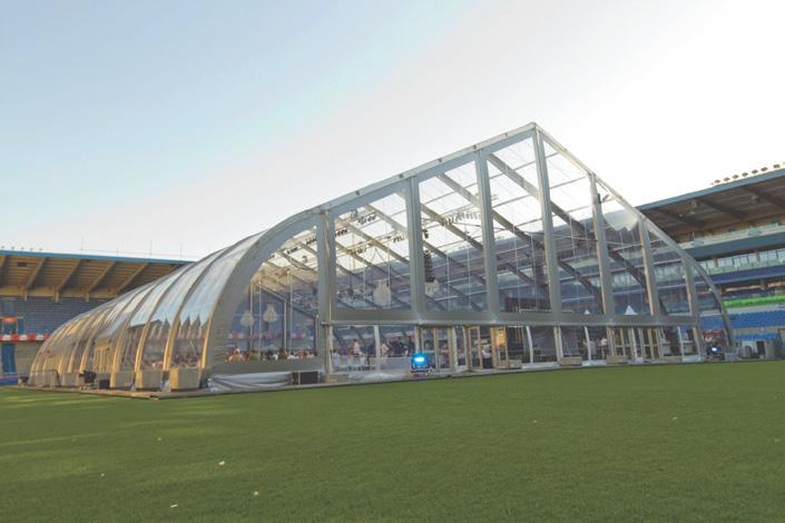 50 Maessen Tentsupply: van complete festivals tot semipermanente structuren Met een zomer vol festivals en een najaar waarin de zakelijke evenementenbranche weer in volle vaart doordraaide, kan Jimco Zijlstra van Maessen Tentsupply terugkijken op een bewogen jaar. Het bedrijf leverde tenten en structuren voor iconische festivals, plukt de vruchten van de eerder opgestarte samenwerking met de internationale Veldeman Group en introduceerde in het verlengde van die samenwerking een gloednieuwe blikvanger bij hun eigen hechte klantenkring: de TFS Tent. ‘Dan sta je op een festival en denk je: wauw, dit hebben wij neergezet’, vertelt Jimco enthousiast.