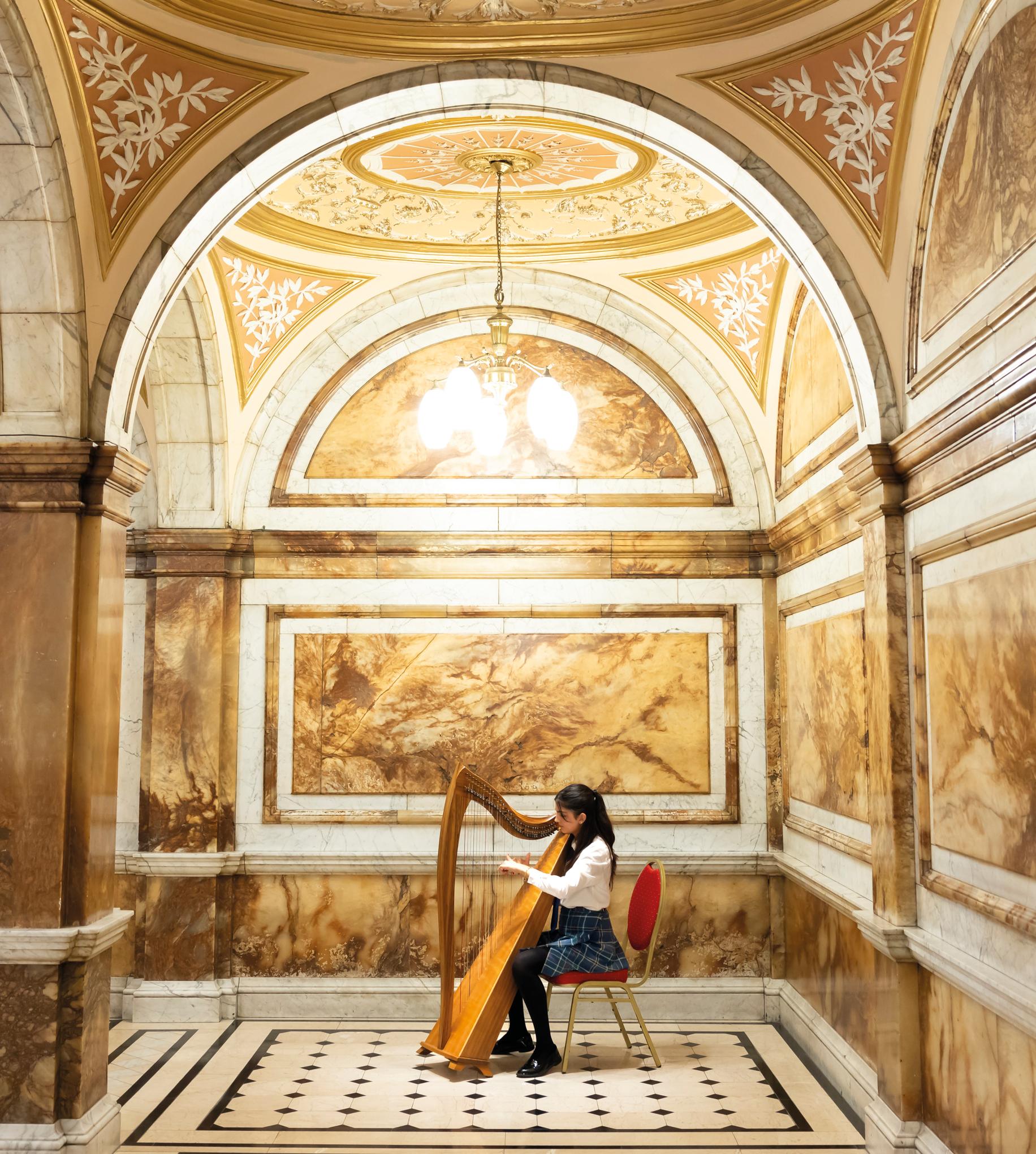 Above: S4 pupil, Maya, performing for guests at the Civic Reception, celebrating the School’s 900th anniversary.