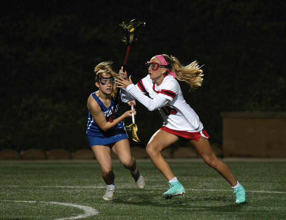 Kgrees and intense winds chill ing the audience. Despite this cold, the girls lacrosse team kept the heat, winning 18-7 against Culver City High School. Excitement going into the game for seniors such as Maya Cozza helped the girls maintain their re lentless attitude, which encouraged them to play their best.