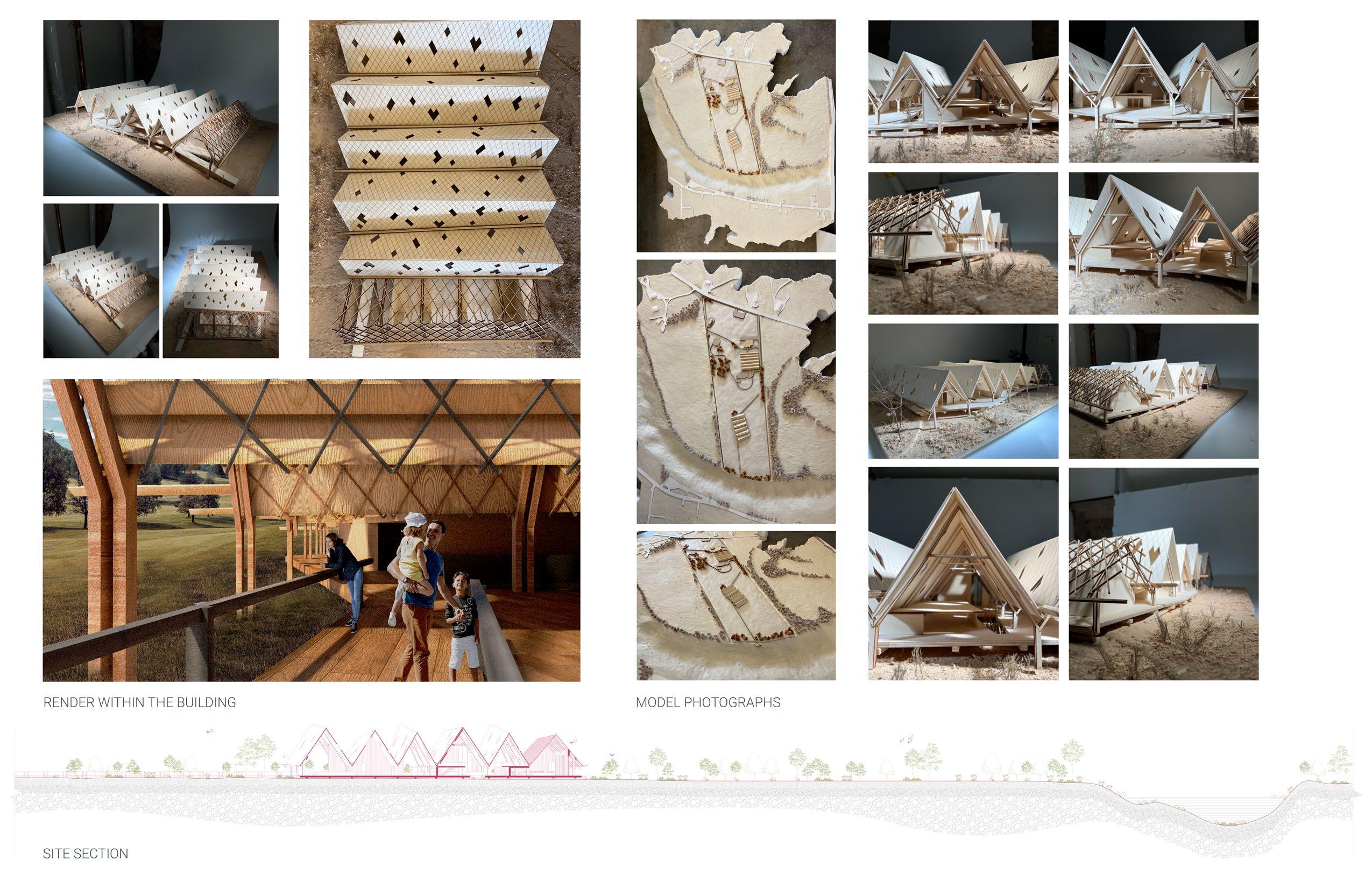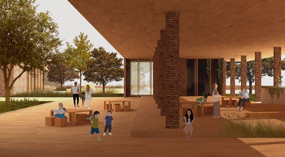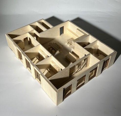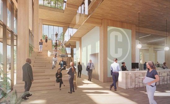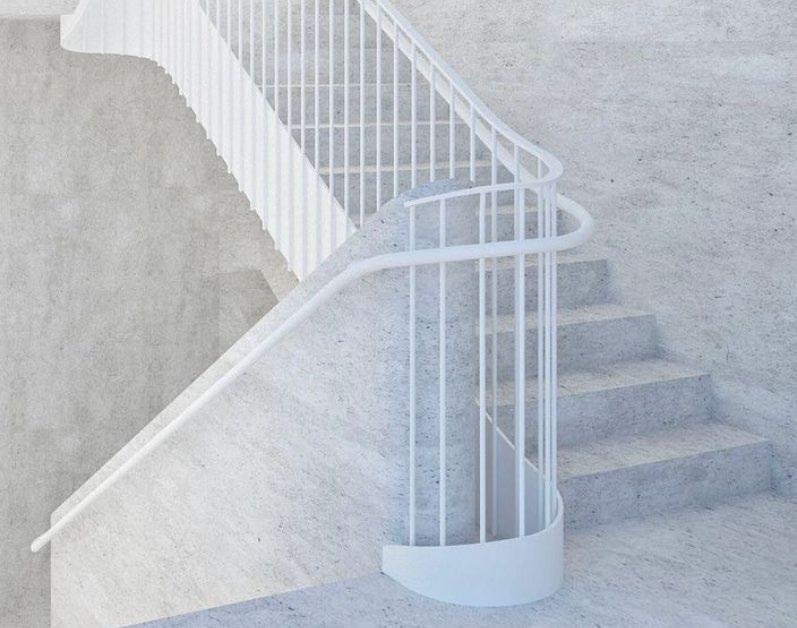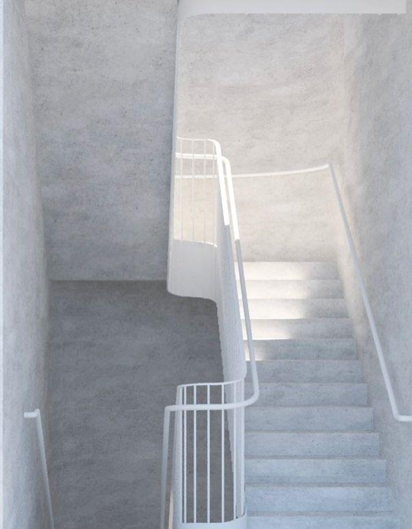 3D MODEL AND RENDER OF THE FEATURE STAIR THROUGH THE ATRIUM