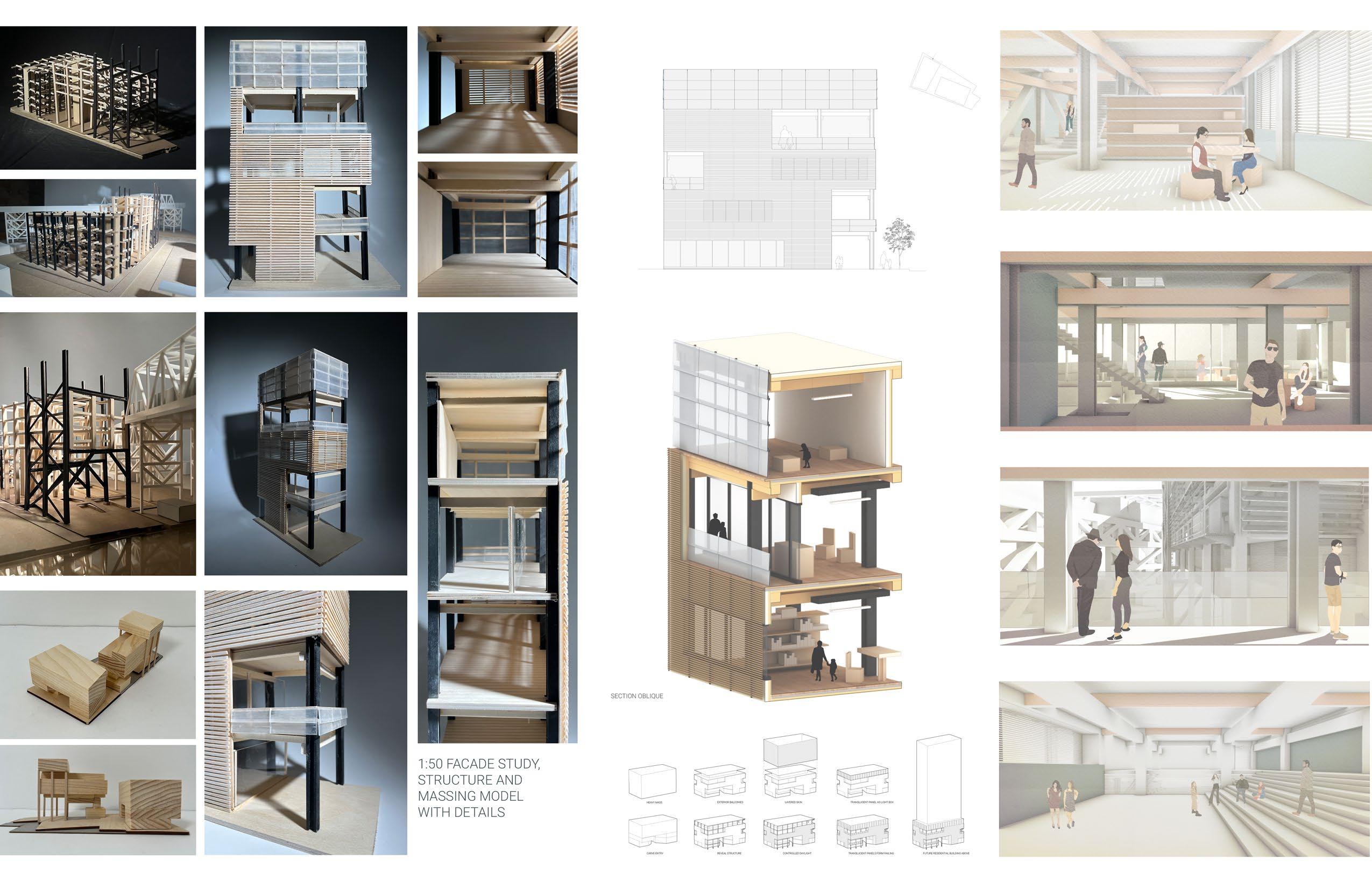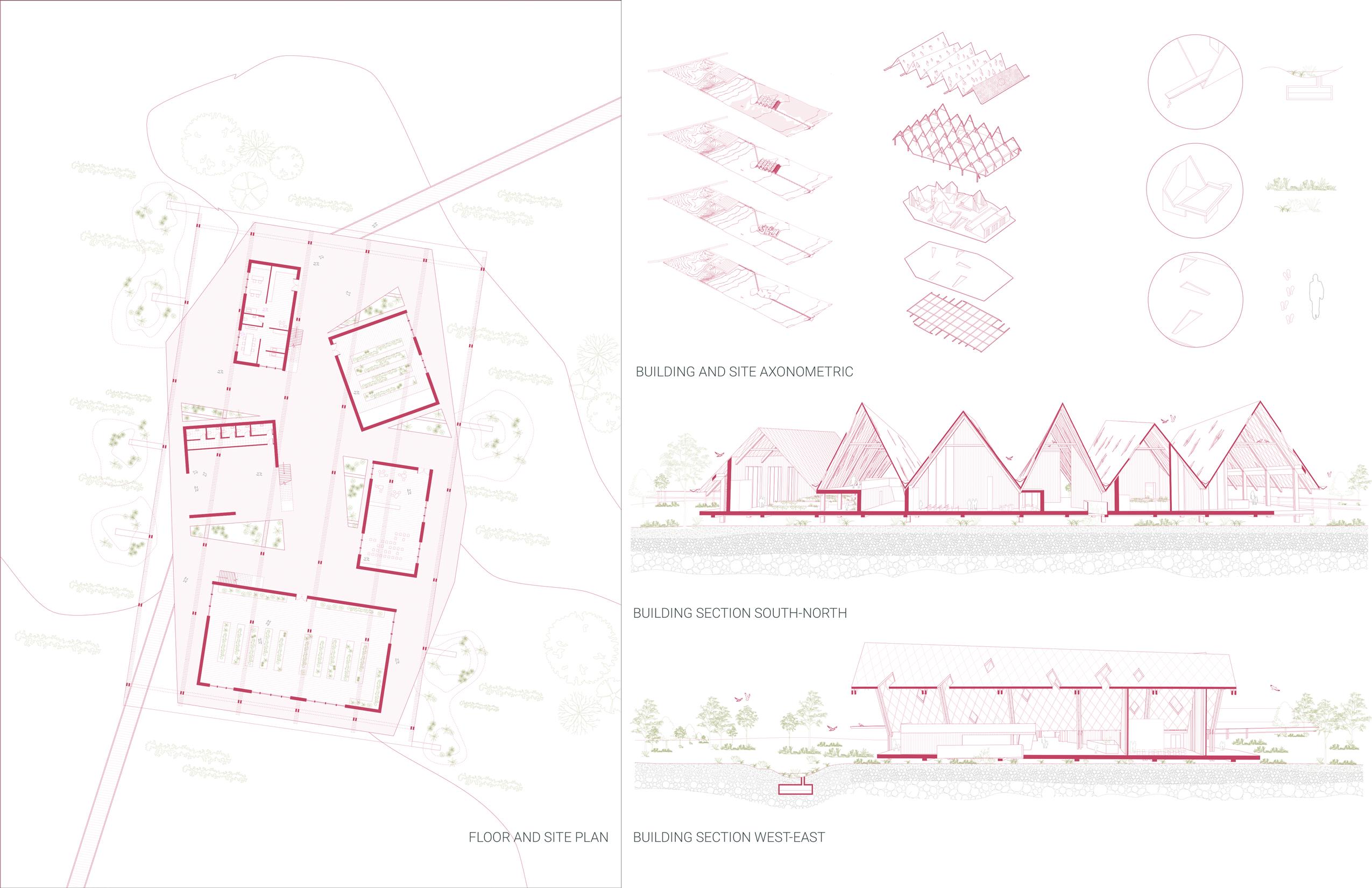 GRUND FLOOR PLAN, COLUMN LAYOUT, PROGRAM MASSING AND CIRCULATION
