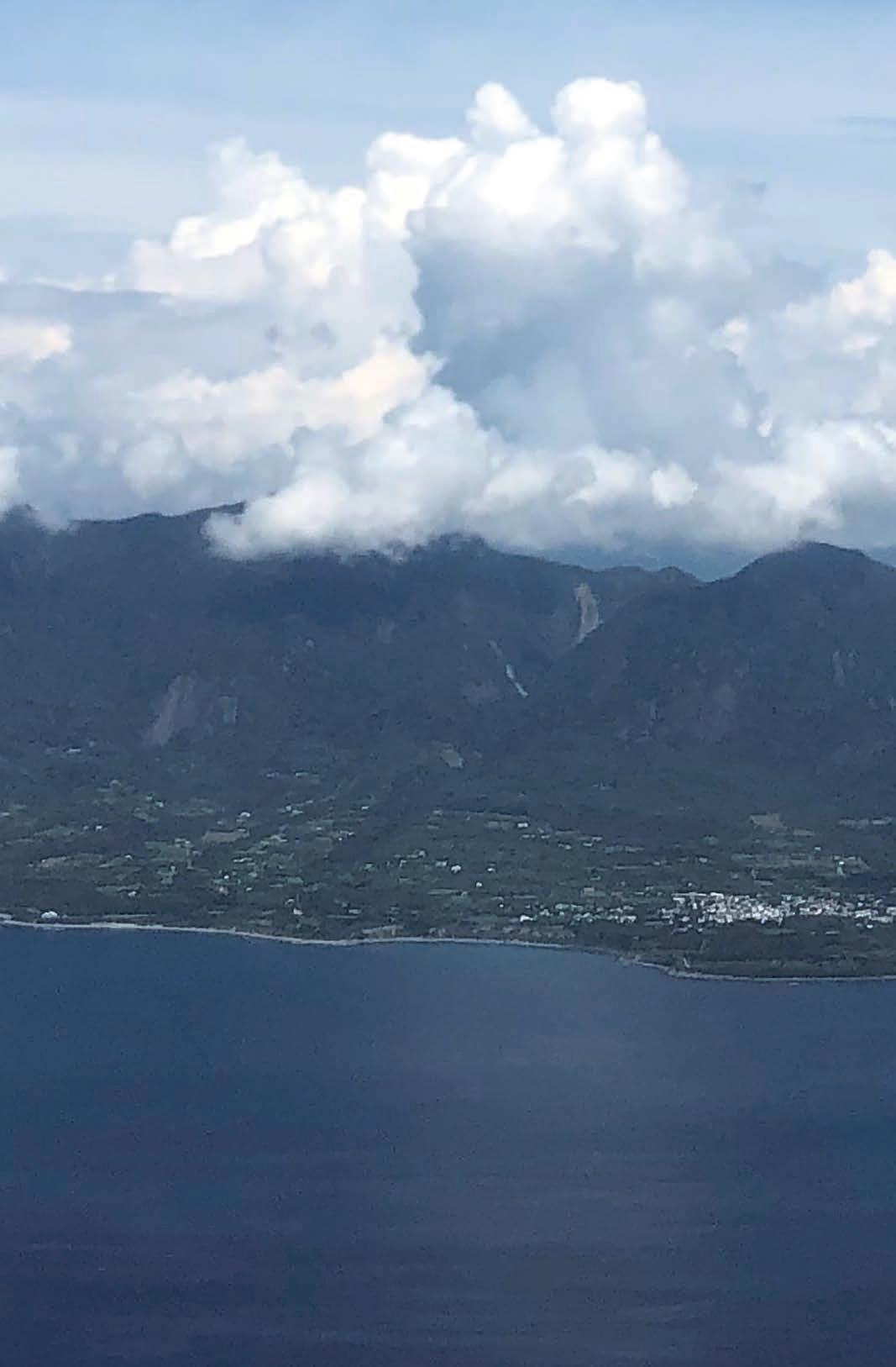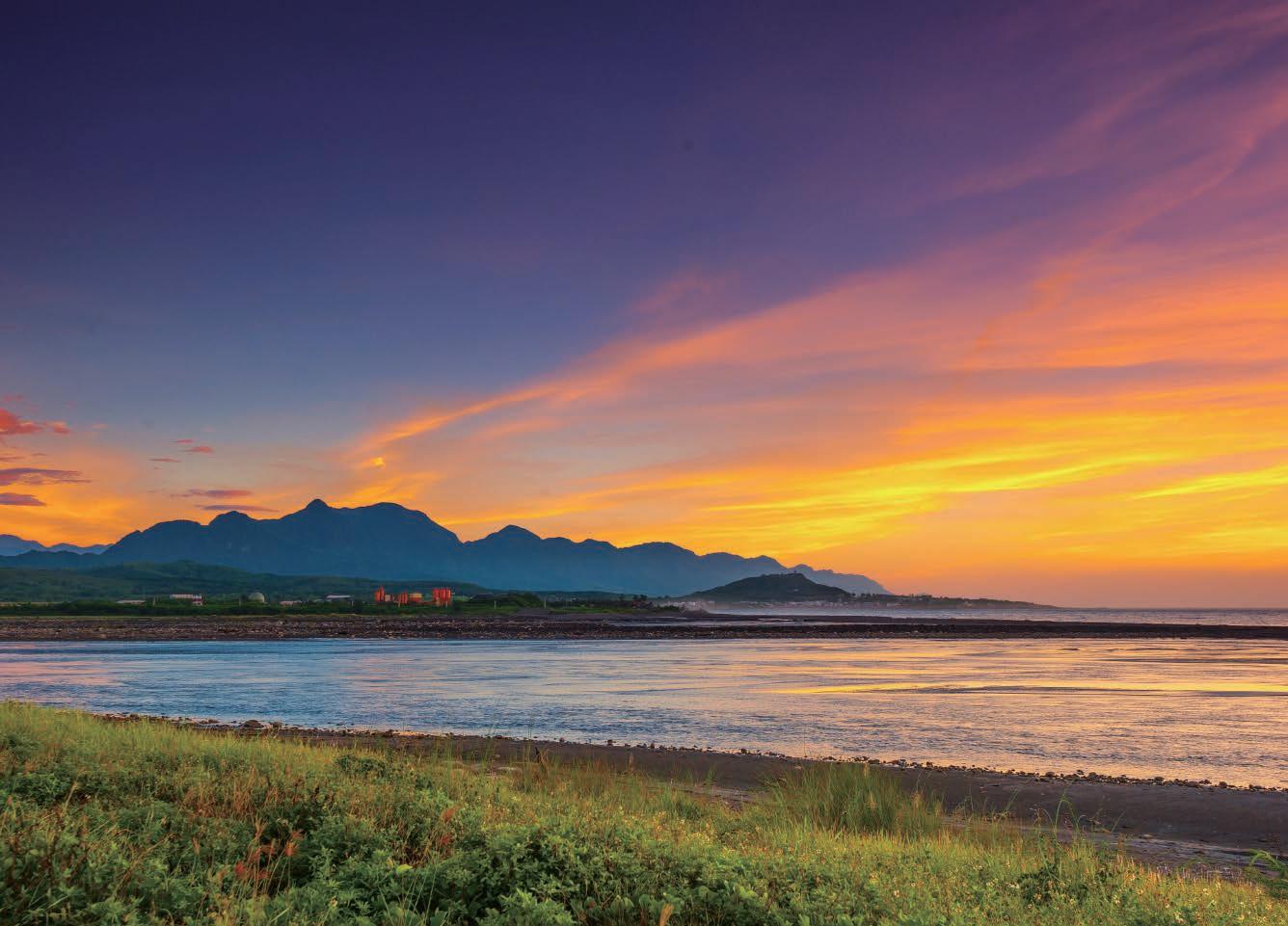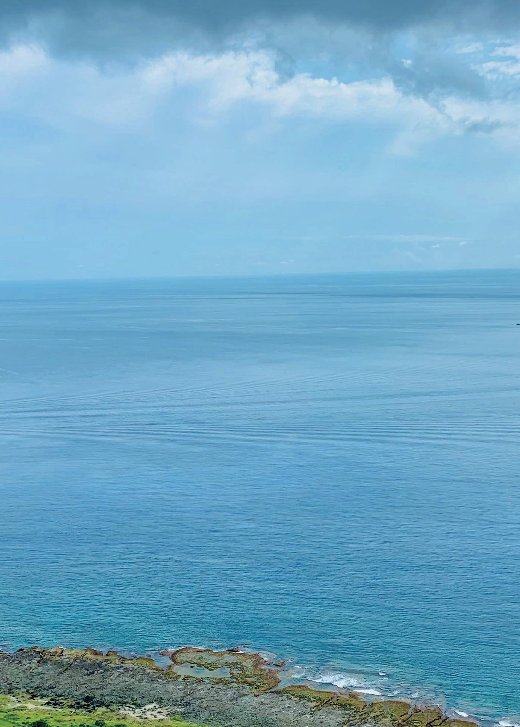 我們站在太平溪上,便能清楚看 到七、八公里外的海岸線,遠處 平直的海岸線,更將陸地、海洋 和天空切割成三個區塊。春夏秋 冬、風雨陰晴,三個區塊的景象、