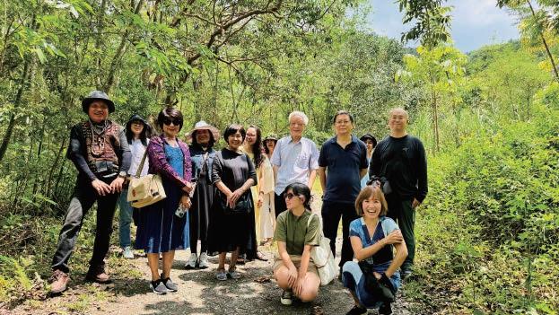 穿梭在達魯瑪克部落山林,民俗植物的知識 與香氣,是引領眾詩人的創作繆思。新加坡 詩人游以飄教授(後排右一)(許佳慈 攝影)