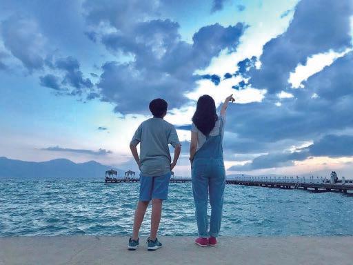 顏色和情緒千變萬化,是我永遠 無法抹滅的記憶。尤其夏季的傍 晚,天空的雲朵形貌多變,色彩 豐富,帶引著我對浩瀚宇宙的遐 想;我後來耽溺於哲學玄思,大 概就種因於此。