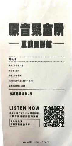 (mafama’)展區,收納 37 張金曲作品,229 首黑膠時期原 住民歌曲。還可以挑選數位黑 膠,並到櫃檯掃描製作屬於自己 的音樂清單,讓人回味、體驗、 探索過去唱片館帶給人們的感 動。