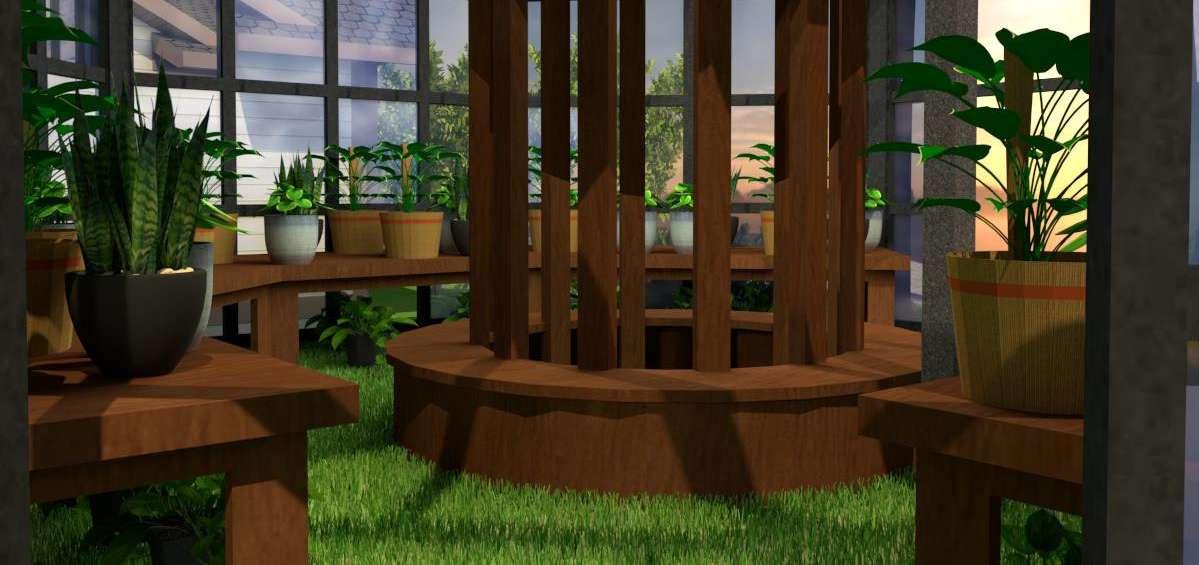 The agricultural potential that has been developing for 20 years is used as a solution to the problem of economic decline by designing a green house and ornamental plant business. The impact of the green house is to stabilize the economy and calm the psyches of the residents.