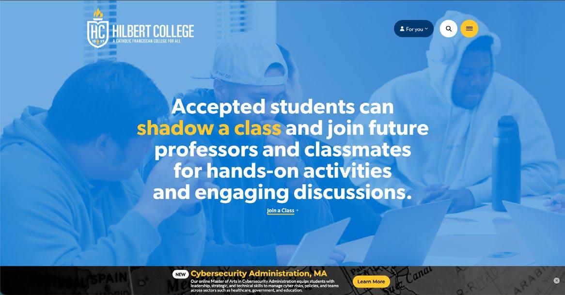 In May 2025, Hilbert College proudly unveiled its newly redesigned website, marking a major step forward in accessibility and user experience. From the very beginning, the goal was clear: create a site that is welcoming, easy to navigate, and fully ADA compliant—a digital space that reflects Hilbert’s Franciscan values of inclusivity and community.