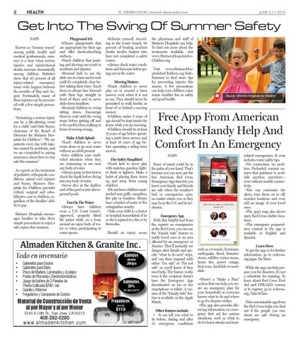 the physicians and staff of Shriners Hospitals can help. To find out more about the treatments available, visit www.ShrinersHospitalsforChildren.org. Visit www.ShrinersHospitalsforChildren.org/SafeSummer to find more tips for preventing injuries this season. A few precautions can help your children enjoy warm weather fun in safety and good health.