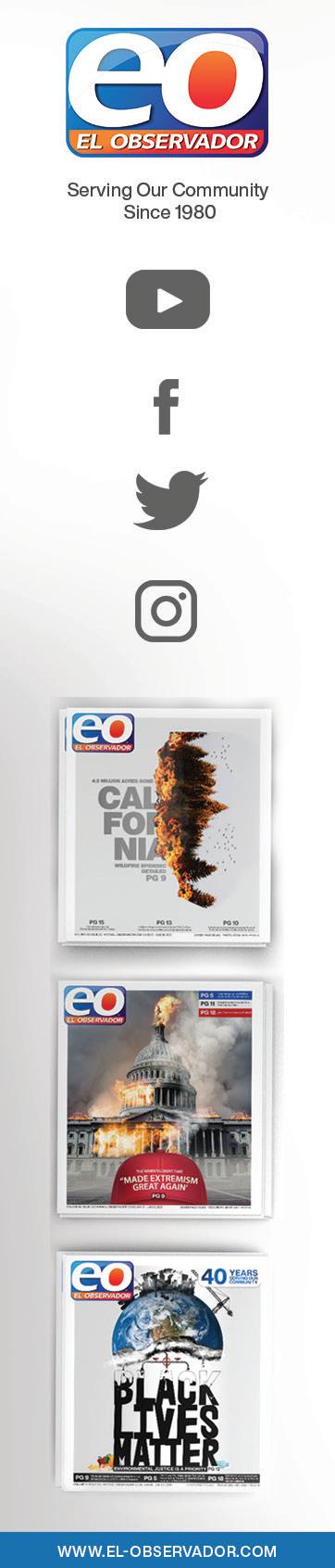 El Observador was founded in 1980 to serve the informational needs of the Hispanic community in the San Francisco Bay Area with special focus on San Jose, the capital of Silicon Valley. All Rights Reserved. No part of this publication may be transmitted or reproduced by any form or by any means, this includes photo copying, recording or by any informational storage and retrevial systems, electronic or mechanical without express written consent of the publishers. Opinions expressed in El Observador by persons submitting articles are not necessarily the opinions of the publishers.