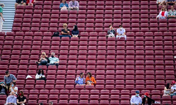 Families of graduating students stay seated while practicing social distancing during the graduation commencement ceremony at Stanford University in Palo Alto on June 13, 2021. Photo Credit: Harika Maddala / CalMatters