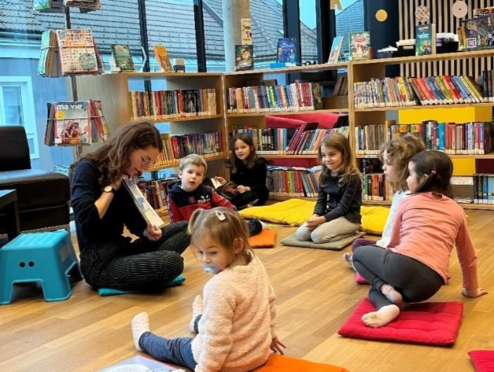 WennBücherKinderaugenzumLeuchtenbringen. BeidergemeinsamenLesezeitinderBibliothekin BöheimkirchenhatdieehrenamtlicheLesepatinHelenaschonfleißig WeihnachtsgeschichtenmitdenKindern gelesen.