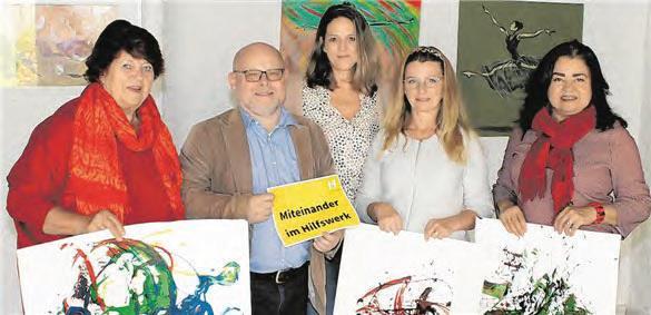 ActionpaintingmitJorgeGoncalvesundperkussiverSpontanimprovisationsowieTanz warkürzlichinder HerzogenburgerSchupfengalerievonRenateMinarzangesagt.DieVorfreudewargroß,docheskam ganzandersalsgeplant.DaderKünstlerkurzfristigverhindertwar,bekamdie„Spontanimprovisation“ gleicheineneueBedeutung. Aufdas„Actionpainting“wurdeabernichtverzichtet,dennkurzerhand griffendieDamenselbstzumPinselundfertigtenmoderneKunstwerkean,dieauchihreAbnehmerfanden. DerBetrag,derdurchdenVerkaufderWerkehereingekommenist,wurdevorwenigenTagendem HerzogenburgerHilfswerkzurVerfügunggestelltundObmannBernhardMoserübergeben.Moserbedanktesich beidenKünstlerinnenfürdieSpendemitherzlichenWorten