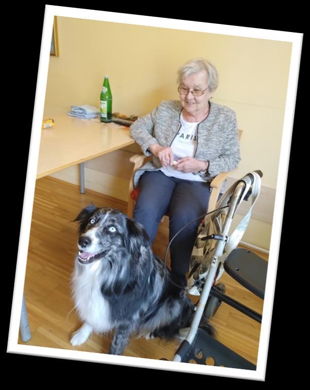 JedenMontagwerdenwirschonsehnsüchtigst voneiner10bis13köpfigenGruppevonSeniorenerwartet.Wir lesenkurzeGeschichtenvor,wirplaudernundwasdieSeniorenammeistenlieben,istdasSingen„alter“Lieder, wie„DerliebeAugustin“oder„DasWandernistdesMüllers Lust“etc. DasingenauchPersonenmit,dieaufgrund ihrerDemenznormalerweisenichtsprechenunddasfreutunsimmersehr.LesepatinMariabegleitetmitderGitarreundJohannasorgtfürStimmungmitihrerZiehharmonika. DaunsauchdieAbwechslungwichtigistkambeimletztenBesuchRainermitseinemTherapiehundBuddymitins Heim.DasStreichelnundFütternmitLeckerlismachtegroßenSpaßundnochlustigerwurdeesmiteinemWürfelRatespiel.DieSeniorinnenundSeniorennanntenjeweilseineZahlvon1bis6undBuddywürfelte….Natürlich warenalleGewinner*innen ��