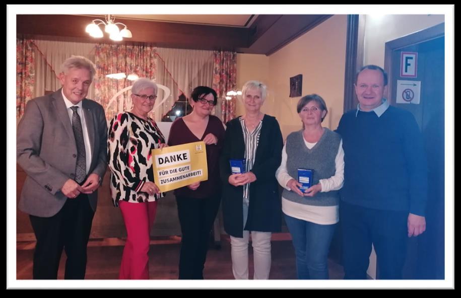 SilberneEhrennadelfürEvaundKurtAppinger,HanneloreLinhart,ChristineOswald,ElisabethPaset,Renateund FranzZojer.GoldeneEhrennadelfürHeidiundFranzSchuecker.Wirgratulieren!