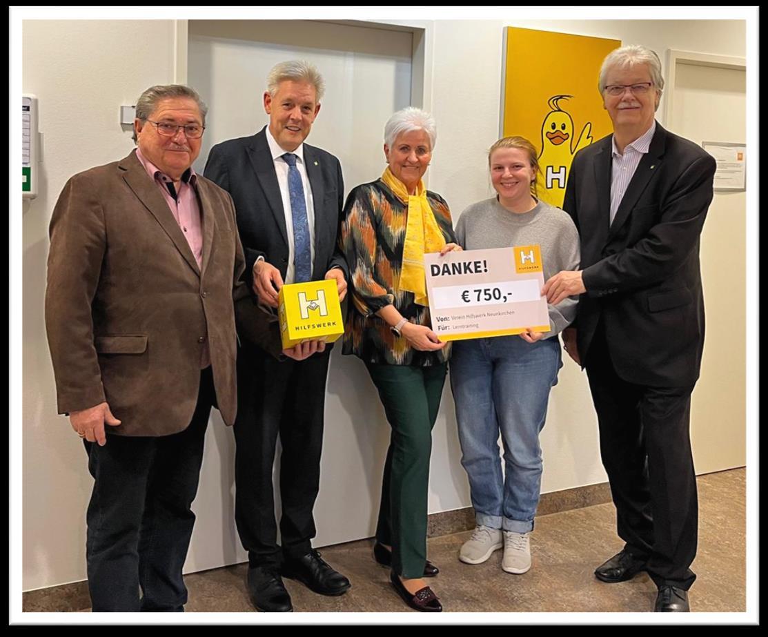 SpendenübergabevomHilfswerkNeunkirchendurchdieVorsitzendeGertraudeLukasundihremTeamandie Legasthenie-undLerntrainerinM.A.AlinaFloner.DieserBeitragsichertlernschwacheKinderihrDefizitaufzuholen.