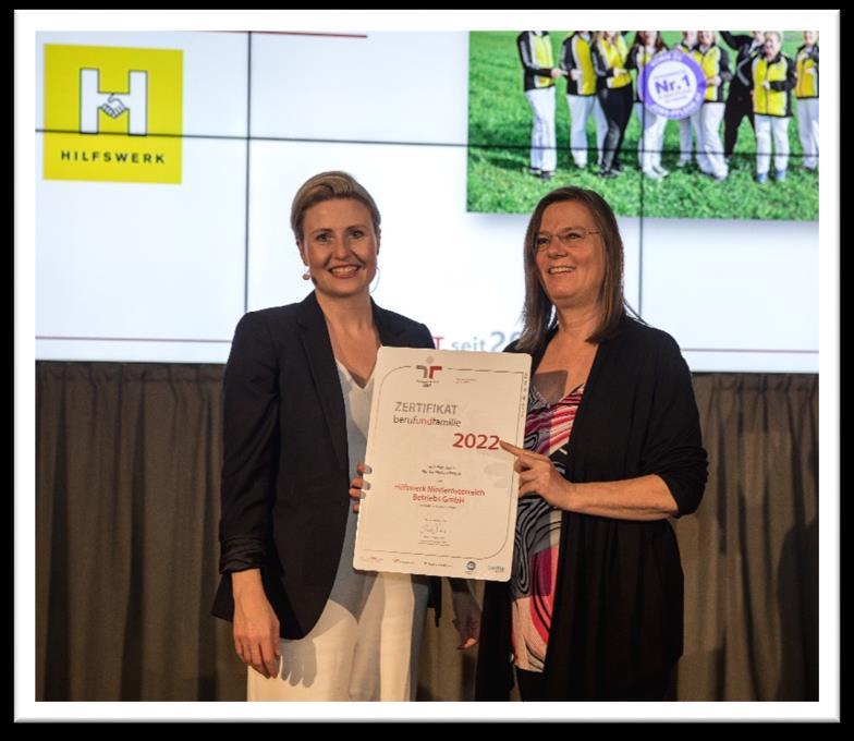BereitszumsechstenMalwurdedas HilfswerkNiederösterreichmitdem Gütesiegel„AuditBerufundFamilie“ ausgezeichnetundsomitalsbesonders familienfreundlicherArbeitgeber zertifiziert.