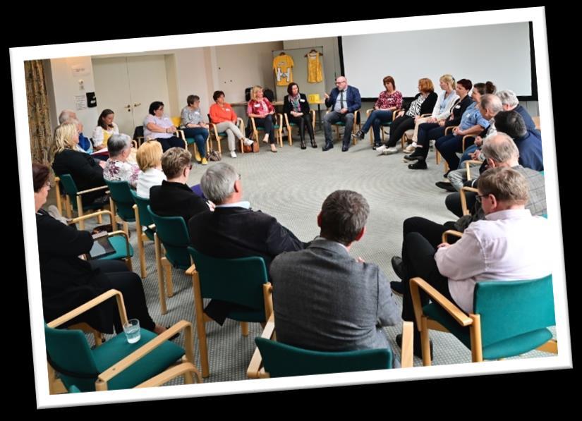 WirfreuenunssehrüberdieregeTeilnahmebeiunserendiesjährigenRegionalkonferenzen!Erstmalshabenwir sieineinemgrößerenRahmengestaltet,miteinemerweitertenTeilnehmerkreisundmitvielZeitfüreinen fachlichenundpersönlichenAustausch.UnddieseZeitwurdehervorragendgenutzt!Indenvierangebotenen Workshopswurdeangeregtdiskutiert,sodasssichHaupt-undEhrenamtidealvernetzenkonntenunddie gebündelte„Hilfswerk-Erfahrung“zumTragenkam. DieErgebnissederGruppenwerdenindiesemDirektenDraht zusammengefasst:AlleineandenvielenkreativenVorschlägenfürneueehrenamtlicheAngebotewirdsichtbar, wiekonstruktivundzukunftsorientiertandenfünfNachmittagengearbeitetwurde.GroßesDankeschönanalle GästefürdieaktiveTeilnahme!